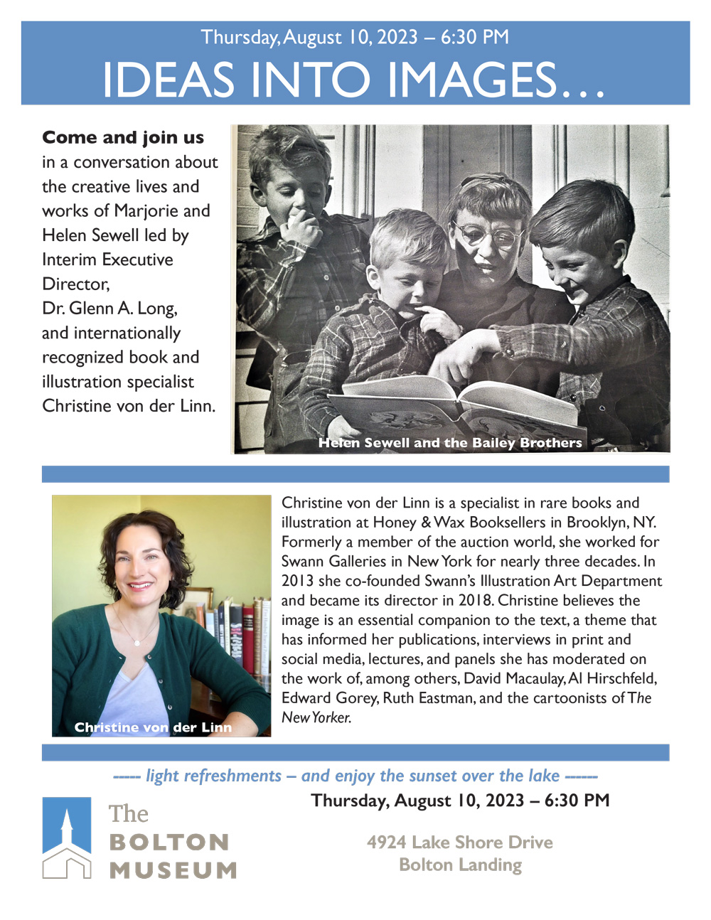 Bolton Historical Museum 4924 Lake Shore Dr, BoltonCome and join us in a conversation about the creative lives and works of Marjorie and Helen Sewell led by Interim Executive Director, Dr. Glenn A. Long, and internationally recognized...