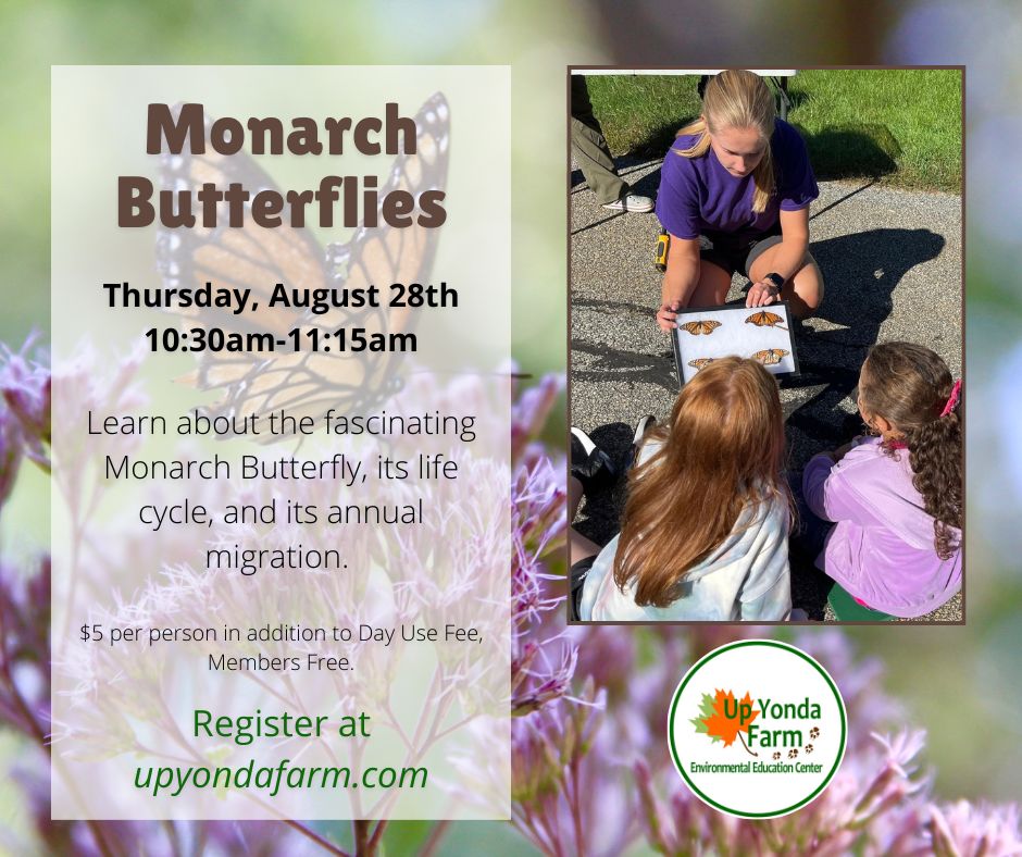 Up Yonda Farm 5239 Lake Shore Dr, Bolton Landing, NY, United StatesLearn about the fascinating Monarch Butterfly, its life cycle, and its annual migration. Nature permitting we will tag a monarchs for the Monarch Watch community science project and learn about...